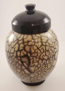 I am a ceramic artist specializing in raku firing. I was introduced to ceramics in high school and then took it up again many years ago at the Fallbrook School of the Arts. Now I work in my studio in Fallbrook, primarily with Raku firing, which is especially interesting to me because of the variability of the finished work. All my pieces are wheel-thrown, though I do alter the forms after throwing. Most of my pieces are vases and jars. I use horsehair, sodium silicate, aluminum foil, newspaper, leaves, feathers, slip, and other tools for my firings.